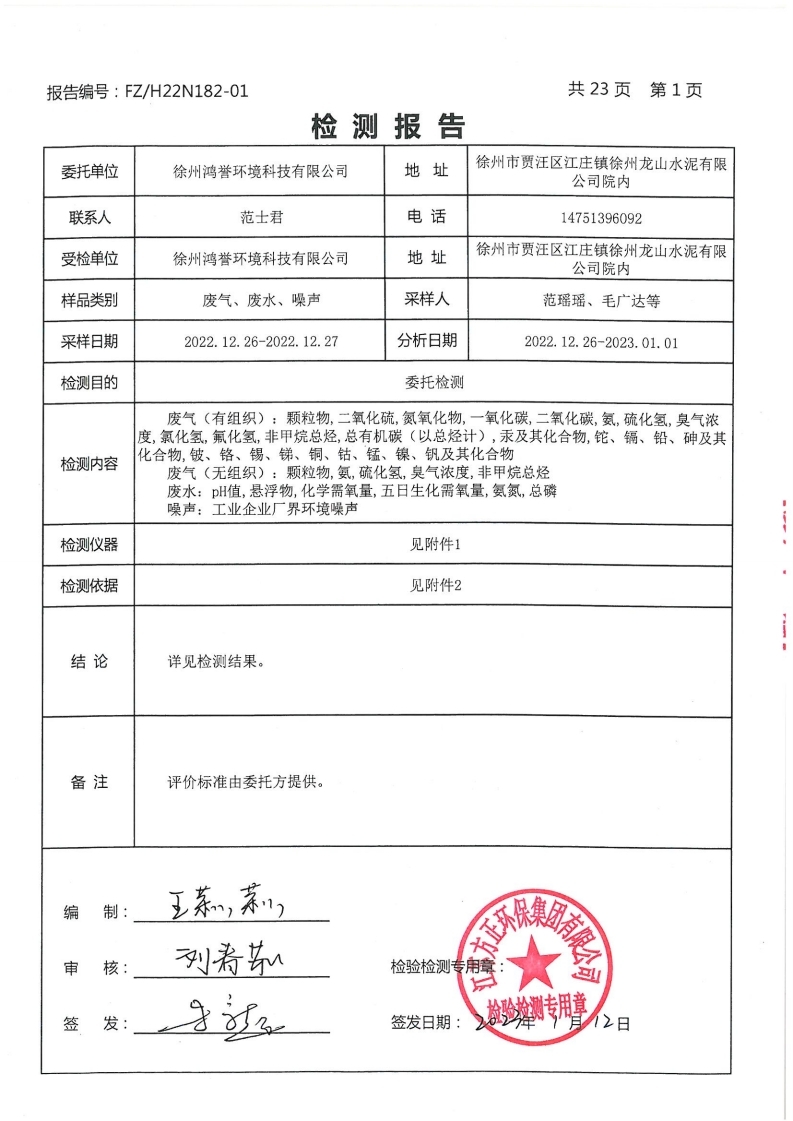 2022年第四季度環境信息公開